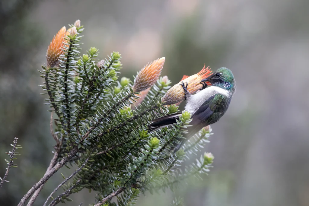 Such small ranges can make species especially vulnerable to habitat loss due to human activities. Take the Chilean Woodstar, a hummingbird native to northern Chile in one of the world’s driest deserts. “The region looks like a moonscape,” Lebbin said, “but then you have these stream valleys that bisect this arid desert, and in the ephemeral streams, there is vegetation. That’s where this hummingbird lives, at the most extreme end of where a hummingbird can survive. And of the four main valleys in Chile where the species was once found, the northern two have been almost completely converted to enclosed greenhouse agriculture. So now the Chilean Woodstar survives only in the two southernmost valleys. We’ve worked with local partners to protect some small refuges there, but it’s very challenging because the areas along the streams are the only arable lands for miles around. So the land prices are very expensive.”