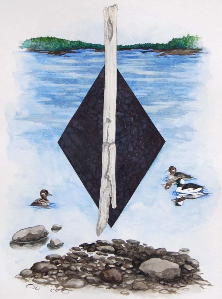 One late January day, I visited a grassy point overlooking the bay on the west side of Maine’s Schoodic Peninsula. The Point, within Acadia National Park boundaries, has picnic tables, fire rings, and a pier jutting out into the water. The wind had swept a recent snowfall into drifts along the field. A few Buffleheads bobbed in the turning tide’s cobalt waves. I walked along the cobble shore, studying the edges of the field that are crumbling into the water.
