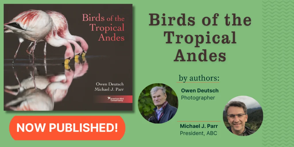 Bursting with dazzling photographs and contributions from celebrated conservationists, Birds of the Tropical Andes, out July 8, 2025 by Princeton University Press, showcases the wonder and incredible diversity of Andean birds and the unique habitats they depend on. In their latest collaboration, Michael J. Parr, President of American Bird Conservancy (ABC), and renowned bird photographer Owen Deutsch invite you on a visually captivating journey that explores the Tropical Andes and shares the best places to experience birding and bird photography.