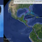 The following decade, in 1973, one of the same researchers tagged another thrush in Illinois and was able to follow it for an entire week in a modified station wagon with a hole cut in the roof for a large radio receiver. He trailed it for more than 900 miles before losing the signal in Manitoba, Canada, during which time he gathered data on its airspeed, groundspeed, and heading each night.