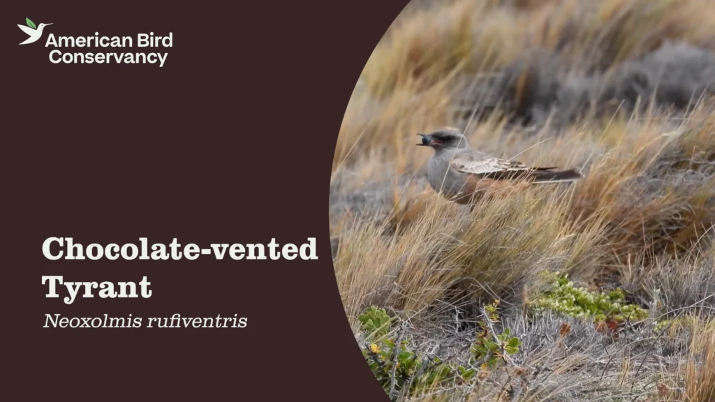 Birds around the world are declining, and many of them, including the Chocolate-vented Tyrant, are facing urgent threats. Throughout the tyrant’s range in South America, livestock grazing, agricultural expansion, and invasive species all hinder this bird’s ability to thrive. Furthermore, sparse protected areas may be insufficient to support the species, particularly on its nonbreeding grounds in the Pampas, the vast grasslands region east of the Andes.
