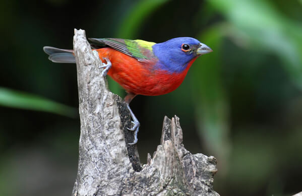 The adult male Painted Bunting is one of the most colorful of all U.S.-breeding birds. In Mexico, the Painted Bunting is commonly known as siete colores, or “seven colors;” in Louisiana, it is called nonpareil, French for “without equal.” Both are fitting terms for this gorgeous bird. Like other colorful species such as the Red-crested Cardinal, the Painted Bunting is a popular cage bird and is heavily trapped for the illegal pet trade.