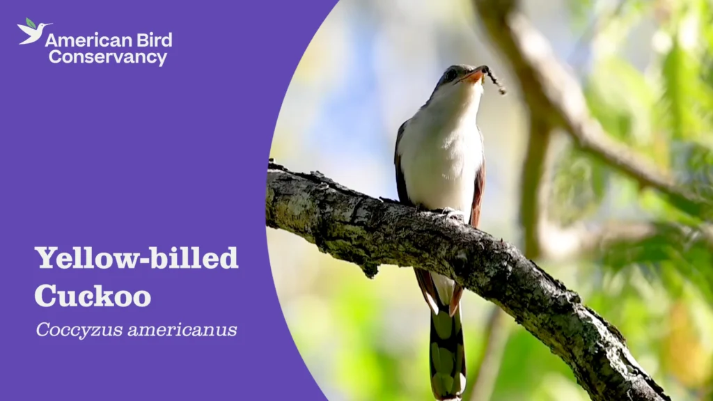 As long-distance nocturnal migrants, Yellow-billed Cuckoos are often victims of collisions with tall buildings, cell towers, radio antennas, wind turbines, and other human-made structures.