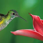 Considering how birds combine all these survival functions — flight, color and form, display behaviors, intelligence, and song—into a single sometimes fragile-looking life-form, it’s easy to realize why people are so intrigued by them. Nowhere is this appeal exhibited more spectacularly than among the hummingbirds. Many of these tiny species have spectacular and convoluted displays or lek behaviors that include elaborate flight trajectories, distinctive calls, sounds produced by both wing and tail, and flashes of jewel-like color. Hummingbirds’ names also evoke their glittering colors and unusual appearance. Entire groups of hummingbirds are known as either “emeralds” or “sapphires,” and others have names such as Amethyst-throated, Garnetthroated, and even the Ruby-topaz Hummingbird. Wings and tails also feature prominently in hummingbird names, such as the large Central American Violet Sabrewing, and perhaps the best named of all birds, the truly remarkable Marvelous Spatuletail.