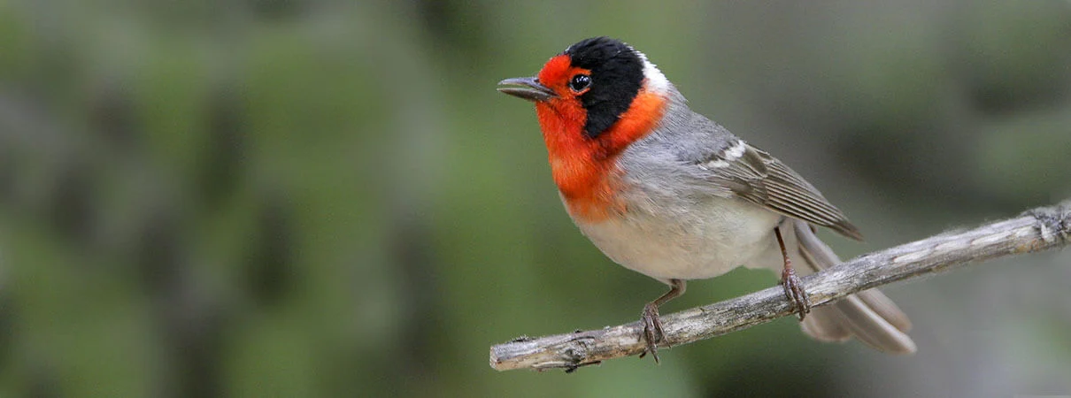 Reinita carirroja. Foto de Greg Lavaty.Las reinitas norteamericanas son famosas por sus brillantes colores, por lo que puede resultar sorprendente que solo dos de ellas tengan rojo en su plumaje: la reinita pintoja y la reinita carirroja. Ambas se encuentran en el suroeste. La reinita carirroja tiene un nombre particularmente acertado, con una llamativa cara y garganta de color escarlata. A pesar de sus vistosos colores, esta es una de las especies de reinitas menos estudiadas en Estados Unidos. En Estados Unidos, la reinita carirroja se encuentra regularmente solo en Arizona y Nuevo México, y Nuevo México es un excelente lugar para observarla. Desierto de Gila En la parte suroeste del estado hay un bastión de la especie, donde las aves pueden encontrarse fácilmente en los cañones de pino y roble densamente cubiertos de vegetación de Gila desde abril hasta principios de septiembre.