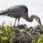 The Great Blue Heron is one of our most widespread and iconic waterbirds. Sometimes confused with the Sandhill Crane, this fierce predator hunts by wading into shallow water, standing still, then striking at fish, frogs, and other prey with its spear-like bill.