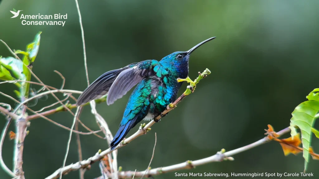 After its unexpected rediscovery in 2022, researchers with American Bird Conservancy (ABC), Universidad Nacional de Colombia, SELVA, ProCAT Colombia, and World Parrot Trust have released new findings about one of the rarest and most poorly known bird species in the world, the Santa Marta Sabrewing. Recently posted as a preprint in bioRxiv, the study offers a glimpse into previously undocumented feeding, singing, and courtship behaviors of this Critically Endangered hummingbird species.